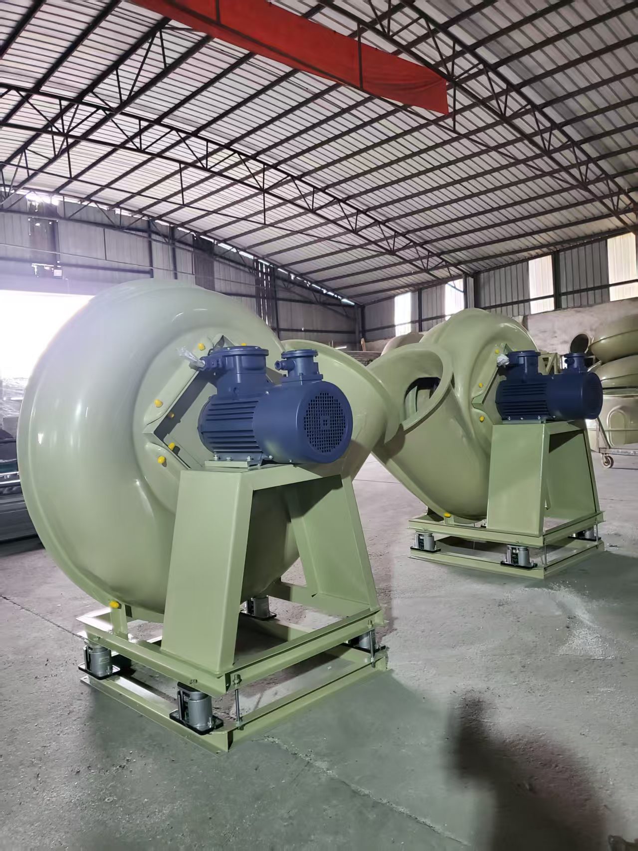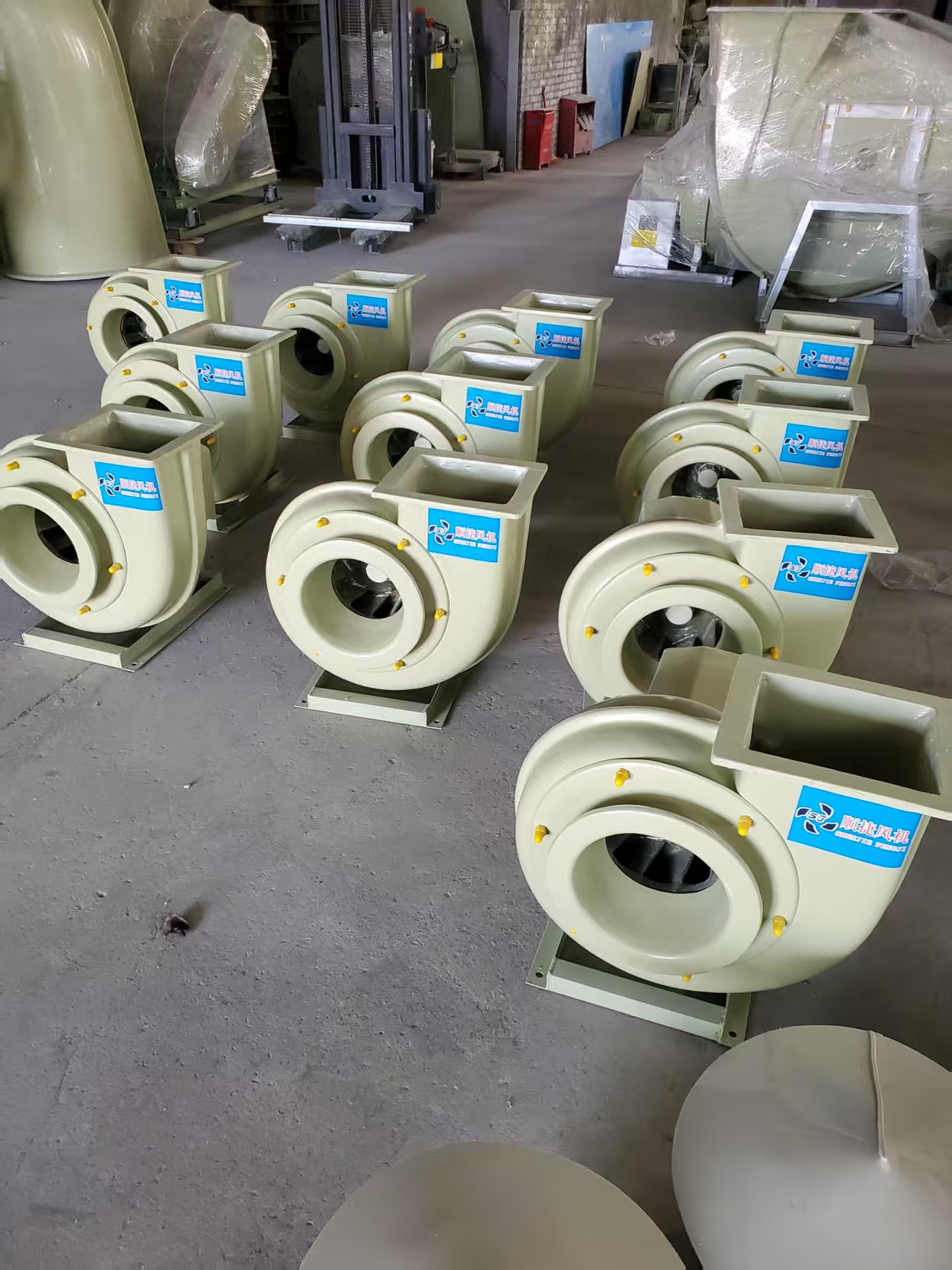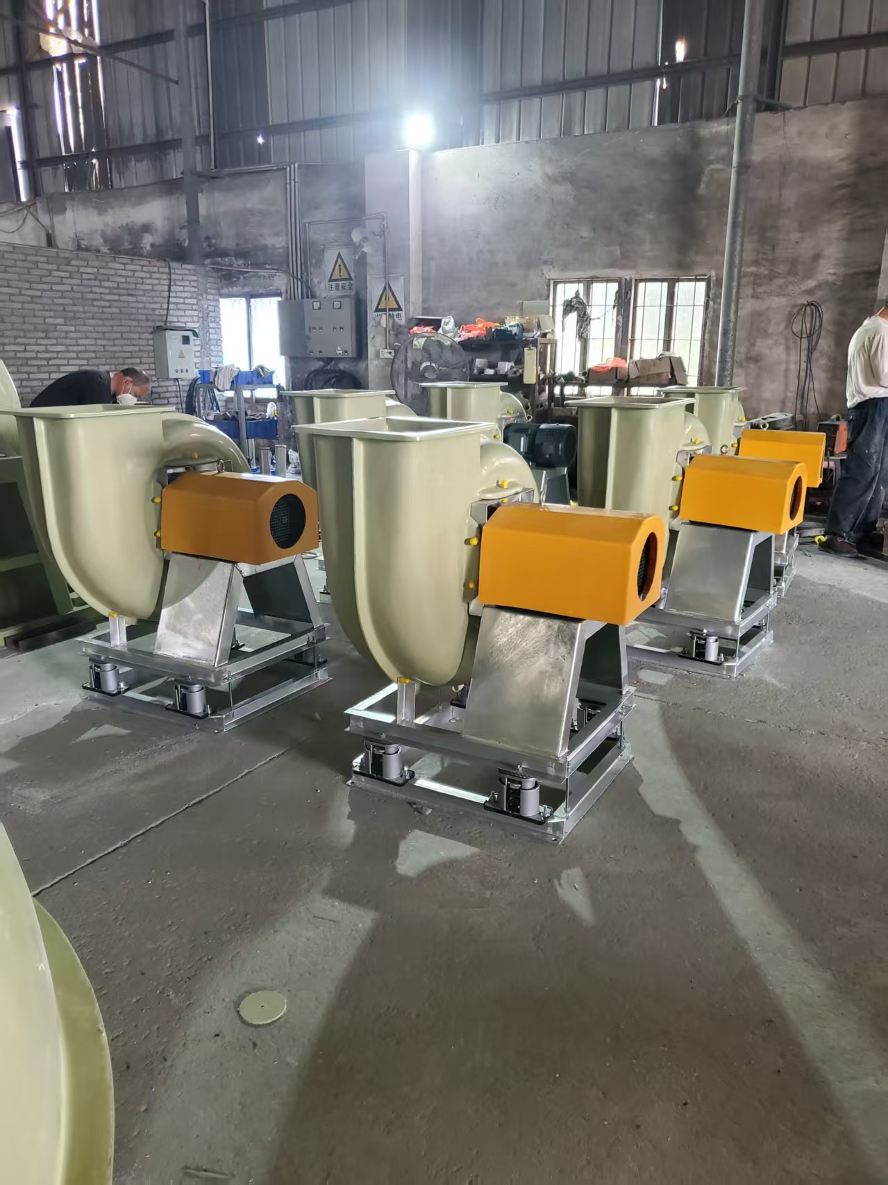 B/F4-72A系列玻璃钢离心风机 用途: F4-72型玻璃钢离心通风机是参照金属4-72型通风机性参数而采用玻璃钢复合材质制作而成。该系列风机可输送含酸碱成分及化学成分的腐蚀性气体。所输送气体不允许含有粘性物质、所含粉尘及硬质颗粒≤150mg/m3、气体温度≤70℃、相对湿度≤100%.该系列风机具有强度高、重量轻、不易老化、耐腐蚀性能良好、噪音低、运转平稳等特点。是一种较为理想的通用型防腐耐酸碱风机。该系列风机广泛应用于化工、电镀、氧化、发电厂、化验室、线路板、环保设备等含有腐蚀性气体的场所。 结构形式及特点: 1.F4-72A式风机主要由叶轮,机壳,电动机等组成。支架由型材制成和风筒连接。 (一)叶轮部:由叶片和叶毂组成,均采用玻璃钢制成。 (二)机壳部:由机壳,风口组成,均采用玻璃钢制成。 (三)进风口部和机壳部:采用玻璃钢制成整体,于风机的侧面,与轴向平面为曲线形状, 有使气体顺利进入叶轮,且损失较小。 (四)电机部:采用防腐离心风机专用卧式电机,机身表面喷涂防腐漆。 2.该系列风机气动效率高,噪声低,防腐蚀性强。 3.适用的介质温度范围:-20℃-70℃,介质相对湿度≤100%,,含尘量≤100mg/m3。 参数: