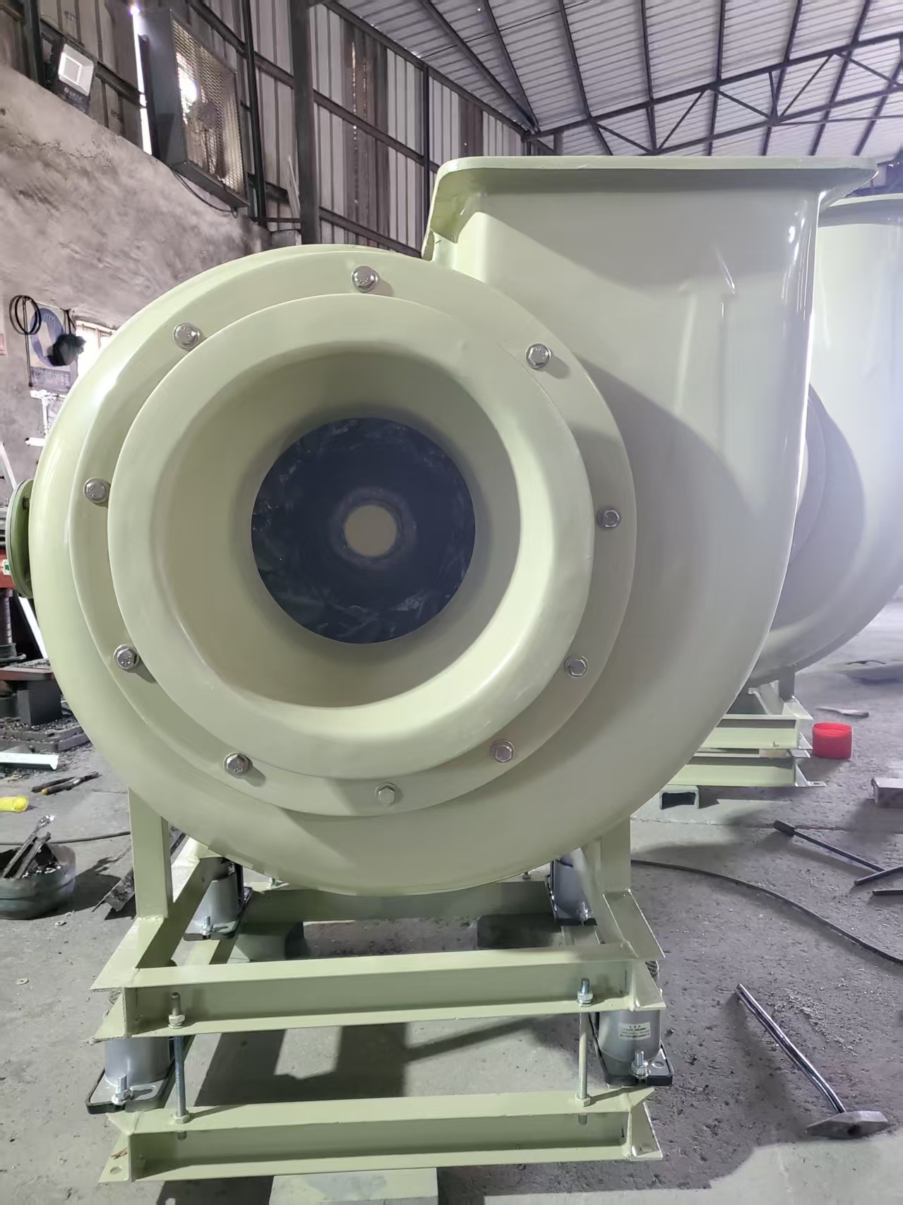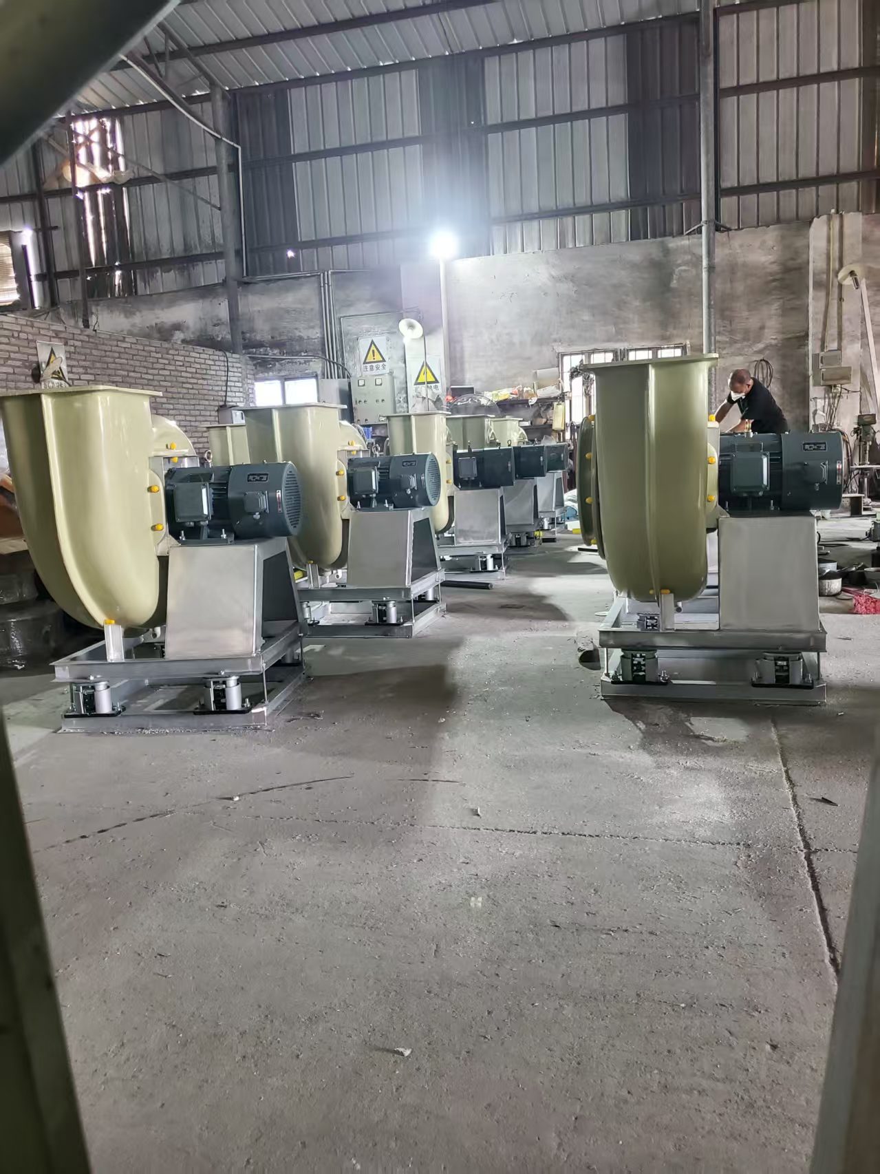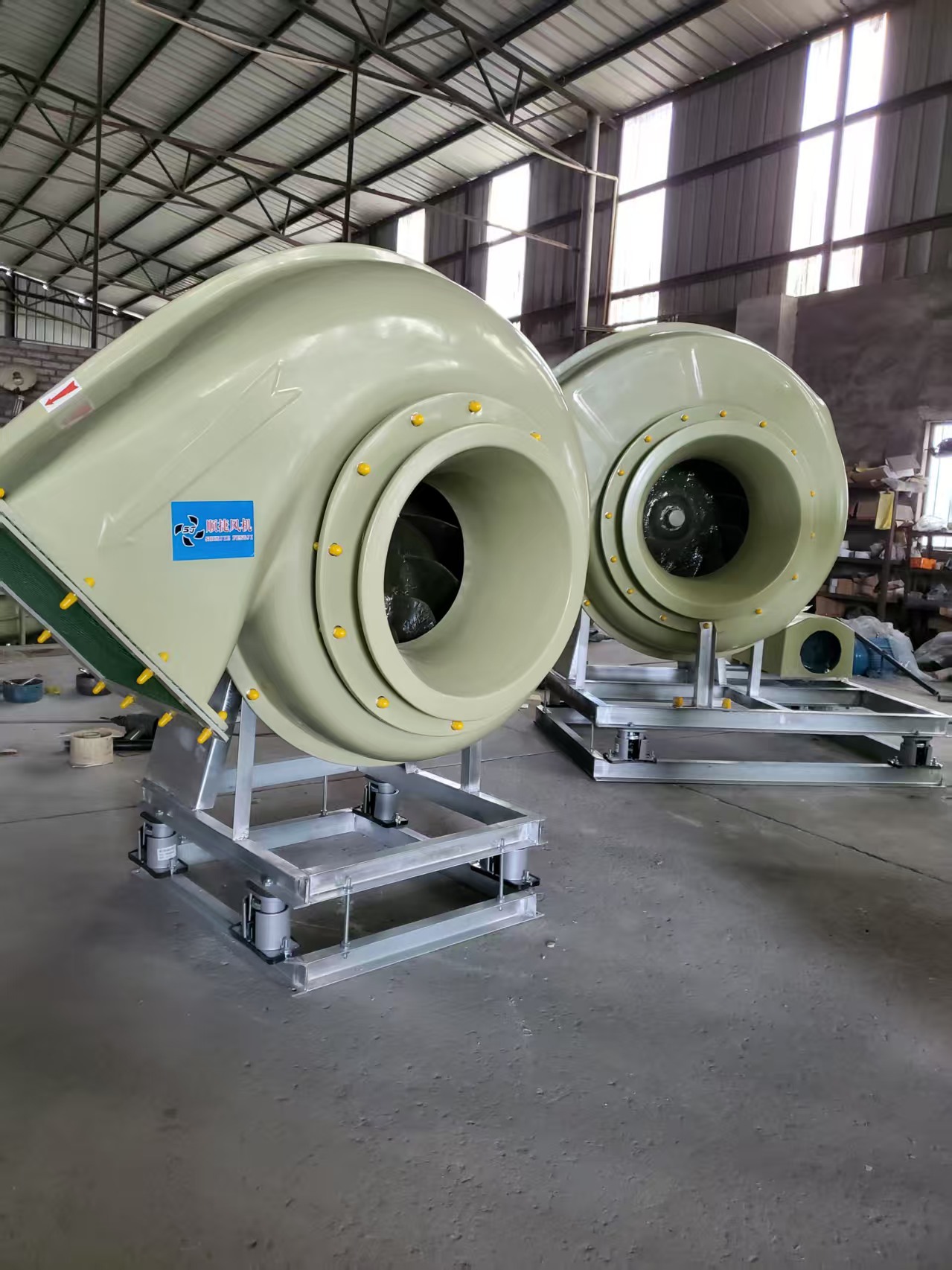 B/F4-72A系列玻璃钢离心风机 用途: F4-72型玻璃钢离心通风机是参照金属4-72型通风机性参数而采用玻璃钢复合材质制作而成。该系列风机可输送含酸碱成分及化学成分的腐蚀性气体。所输送气体不允许含有粘性物质、所含粉尘及硬质颗粒≤150mg/m3、气体温度≤70℃、相对湿度≤100%.该系列风机具有强度高、重量轻、不易老化、耐腐蚀性能良好、噪音低、运转平稳等特点。是一种较为理想的通用型防腐耐酸碱风机。该系列风机广泛应用于化工、电镀、氧化、发电厂、化验室、线路板、环保设备等含有腐蚀性气体的场所。 结构形式及特点: 1.F4-72A式风机主要由叶轮,机壳,电动机等组成。支架由型材制成和风筒连接。 (一)叶轮部:由叶片和叶毂组成,均采用玻璃钢制成。 (二)机壳部:由机壳,风口组成,均采用玻璃钢制成。 (三)进风口部和机壳部:采用玻璃钢制成整体,于风机的侧面,与轴向平面为曲线形状, 有使气体顺利进入叶轮,且损失较小。 (四)电机部:采用防腐离心风机专用卧式电机,机身表面喷涂防腐漆。 2.该系列风机气动效率高,噪声低,防腐蚀性强。 3.适用的介质温度范围:-20℃-70℃,介质相对湿度≤100%,,含尘量≤100mg/m3。 参数:
